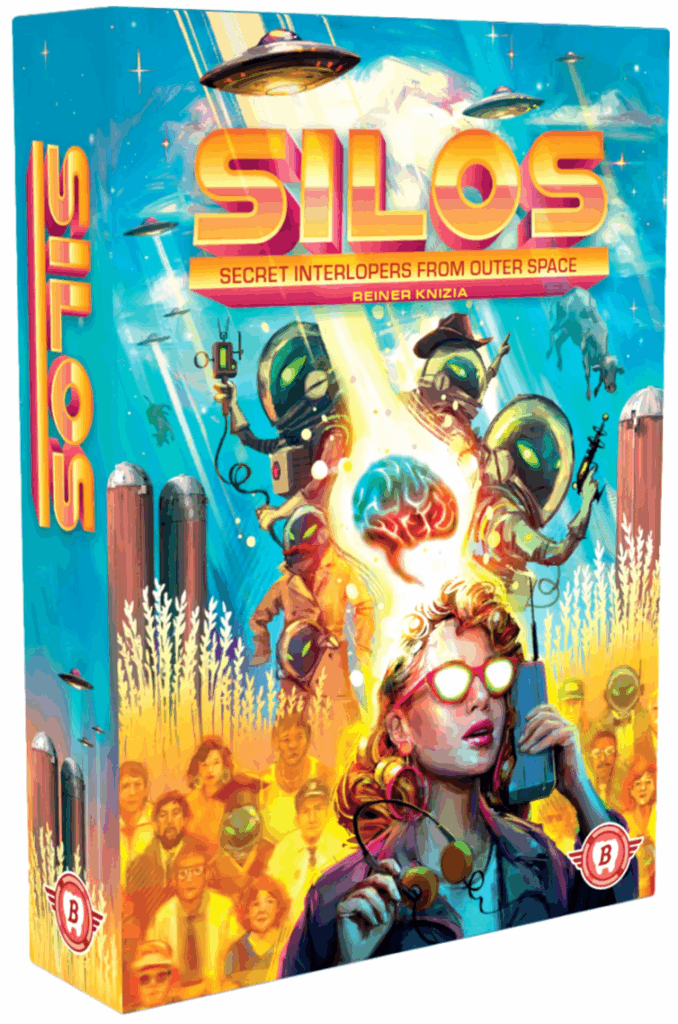 Aliens have come to silo humans — brainwash, steer, and preserve human civilization — for their cosmic purposes! In SILOS (Secret InterLopers from Outer Space), players control competing factions of aliens who abduct and brainwash humans and cows while secretly invading their community. Players tussle for majority influence in the key locations of this small town as they seek to activate location powers and control human specimens for societal power.